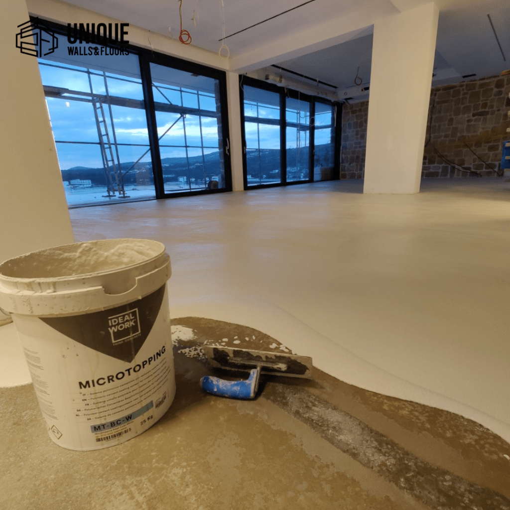 Mikrocement je idealan za podove i zidove zbog svoje visoke otpornosti, bešavne završne obrade i mogućnosti primjene na gotovo svim podlogama bez potrebe za uklanjanjem postojećih materijala. Njegova moderna estetika, široka paleta boja i vodootporna svojstva čine ga savršenim izborom za interijere i eksterijere, od kupaonica do komercijalnih prostora.